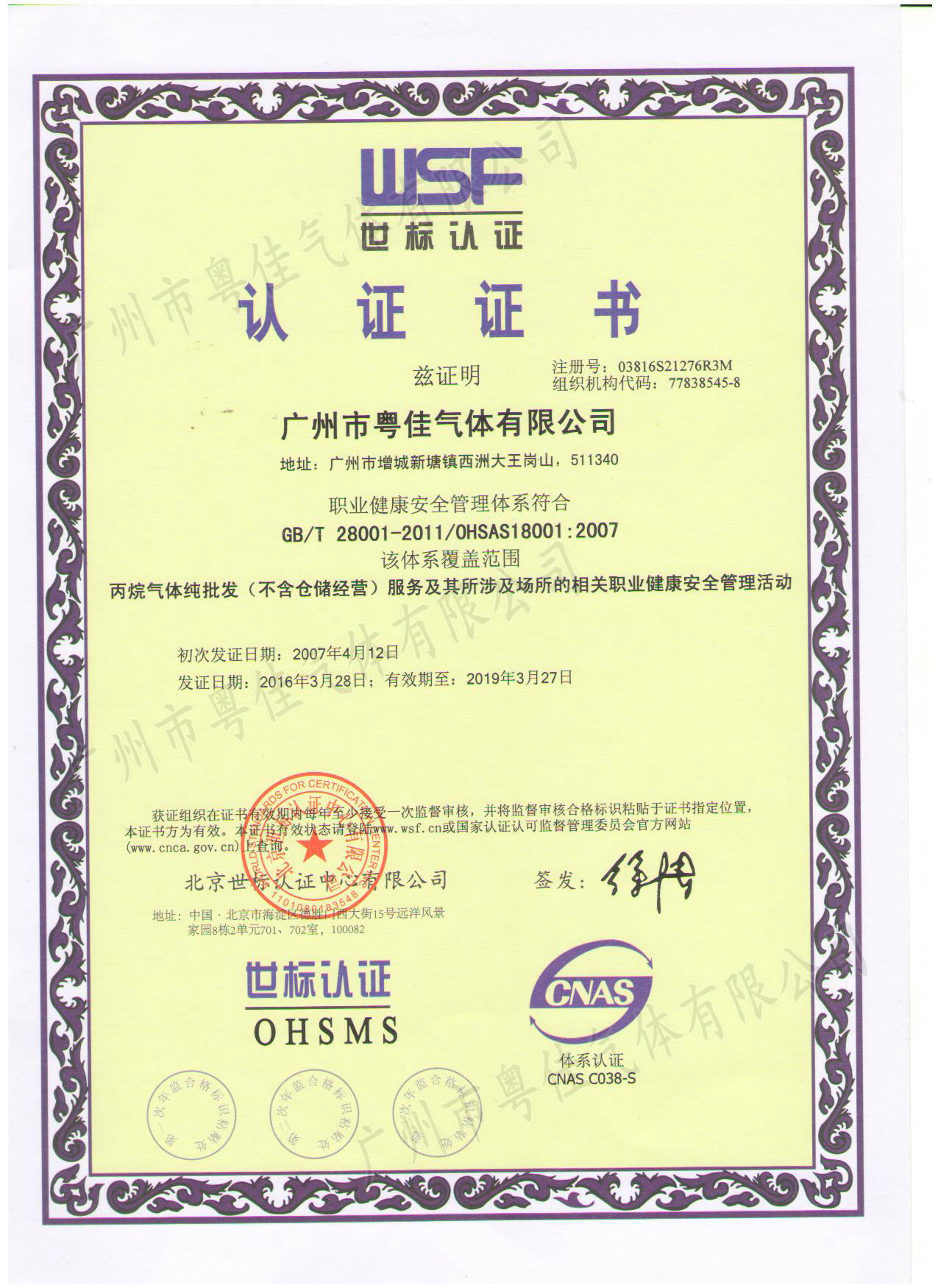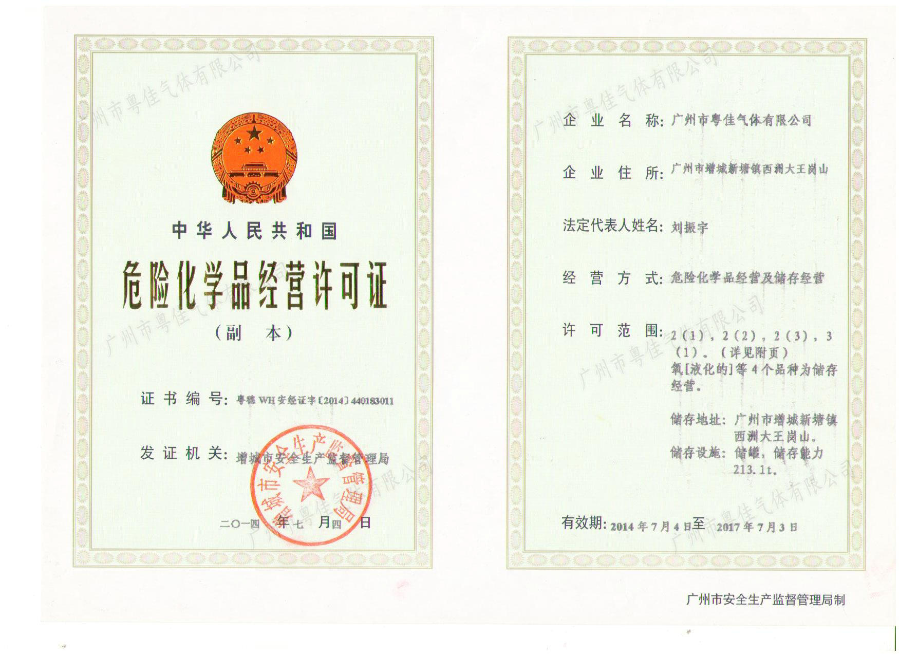 化學(xué)品充裝許可證(粵佳集團(tuán))